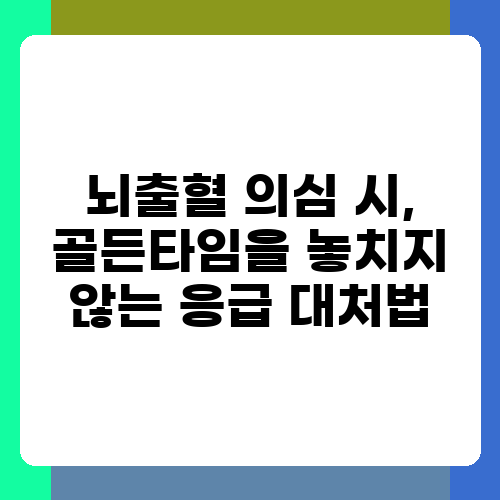 뇌출혈이 의심되는 경우, 가장 중요한 것은 골든타임을 놓치지 않는 것입니다. 골든타임은 뇌출혈 발생 후 3시간 이내를 말하며, 이 시간 안에 치료를 시작하면 뇌 손상을 최소화하고 예후를 좋게 만들 수 있습니다. 따라서 뇌출혈 증상이 의심되면 즉시 119에 신고하고 응급 의료 서비스를 받아야 합니다. 구급대가 도착하기 전까지는 환자를 편안하게 누이고, 머리를 약간 높여주는 것이 좋습니다. 환자가 의식이 있다면, 호흡을 편안하게 할 수 있도록 도와주고, 구토물로 인한 기도 폐쇄를 방지해야 합니다. 만약 환자가 의식이 없다면, 기도를 확보하고 심폐소생술(CPR)을 실시하는 것을 고려해야 합니다. 하지만 CPR은 전문 교육을 받은 사람이 시행해야 하며, 잘못된 방법으로 시행할 경우 더 큰 위험을 초래할 수 있다는 점을 기억하세요. 응급 구조대원의 지시에 따라 행동하는 것이 가장 안전합니다. 뇌출혈은 예방이 중요하지만, 만약 증상이 나타난다면 신속한 대처가 생존율을 높이는 가장 중요한 요소입니다.