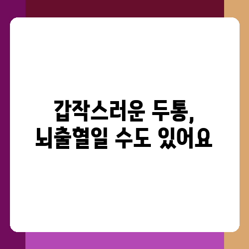 갑작스러운 두통, 몸의 한쪽 마비… 상상만 해도 끔찍한 뇌출혈. 하지만 조기에 증상을 알아차리고 신속하게 대처한다면 소중한 생명을 지킬 수 있습니다. 뇌출혈은 시간이 생명인 질병이기에, 빠른 대응이 무엇보다 중요해요. 이 글에서는 뇌출혈의 초기 증상을 정확하게 파악하고, 골든타임을 놓치지 않도록 응급 대처법을 자세히 알려드리겠습니다. 함께 뇌출혈에 대한 이해도를 높이고, 소중한 나와 내 가족을 지키는 방법을 배워봐요.