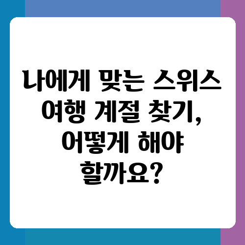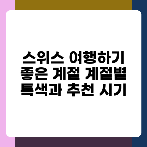 안녕하세요. 꿈꿔왔던 스위스 여행을 계획 중이시라면 정말 축하드려요! 스위스는 사계절 아름다운 풍경을 자랑하지만, 어떤 계절에 가느냐에 따라 경험이 완전히 달라질 수 있답니다. 저는 수많은 스위스 여행 정보를 분석하고, 직접 여행 경험을 바탕으로 여러분의 여행을 더욱 풍성하게 만들어 줄 최고의 시기를 알려드리고자 합니다. 어떤 계절이 나에게 맞는지 꼼꼼하게 확인해보고, 최고의 추억을 만들어 보세요!