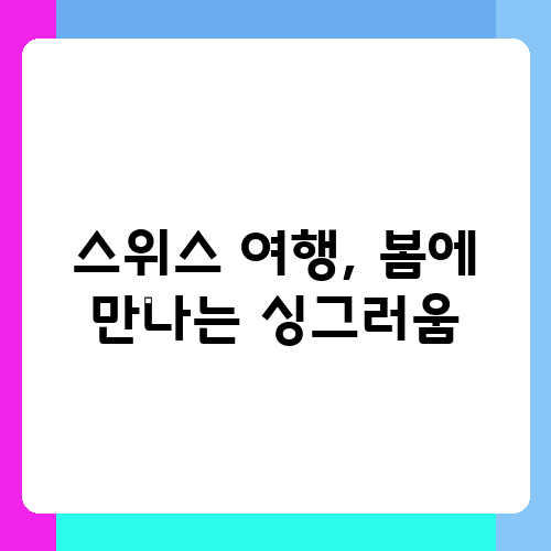 봄의 스위스는 겨울의 흔적을 벗고 깨어나는 자연의 아름다움을 보여줍니다. 만년설 녹은 물이 강과 호수를 채우고, 알프스 산맥은 푸른 초원과 형형색색의 야생화로 물들기 시작해요. 아직 덥지 않아서 트래킹을 하기에도 좋고, 맑은 공기를 마시며 자연을 만끽하기에도 최고의 시기죠. 저는 봄에 스위스를 방문했었는데, 눈 녹은 물이 흐르는 계곡의 맑은 소리와 싱그러운 풀내음을 아직도 잊을 수 없어요. 하지만 봄 날씨는 변덕스러운 편이라 겉옷을 꼭 챙겨가는 것이 좋답니다. 낮에는 따뜻하지만, 아침, 저녁으로는 쌀쌀할 수 있거든요. 4월 말에서 5월 말까지가 봄 여행의 최적기라고 생각합니다. 이 시기에는 융프라우나 마터호른 등의 설산을 배경으로 녹색 초원이 펼쳐지는 환상적인 풍경을 감상할 수 있답니다. 또한, 봄에는 알프스에서 다양한 야생화들이 피어나 아름다운 풍경을 선사한다고 해요. 봄에 스위스를 방문하면, 아름다운 자연과 더불어 다양한 야외 활동을 즐길 수 있답니다.