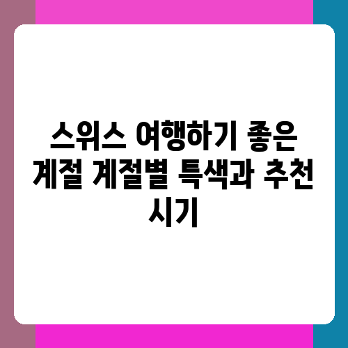 안녕하세요! 스위스 여행을 계획 중이시라면 가장 고민되는 부분 중 하나가 바로 여행 시기 선택일 거예요. 스위스는 사계절의 매력이 다 다른 곳이라 어떤 계절에 가느냐에 따라 전혀 다른 풍경과 경험을 선사하거든요. 그래서 오늘은 스위스 여행하기 좋은 계절과 각 계절의 특징, 그리고 추천 시기를 자세하게 알려드리려고 합니다. 여러분의 스위스 여행 계획에 도움이 되길 바라면서 시작해볼게요!