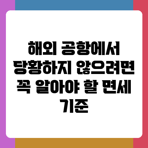 해외여행의 설렘과 함께 면세점 쇼핑은 빼놓을 수 없는 즐거움이죠. 하지만 낯선 공항에서 면세 기준을 제대로 모르면 낭패를 볼 수도 있어요. 저렴하게 득템할 기회를 놓치거나, 심지어 세금을 더 내야 할 수도 있으니까요. 이 글에서는 해외 공항에서 당황하지 않고 면세 쇼핑을 즐길 수 있도록 꼭 알아야 할 면세 기준들을 알려드릴게요. 꼼꼼히 확인하고 즐거운 쇼핑하세요!