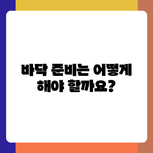 타일을 붙이기 전에 바닥 상태를 꼼꼼하게 확인하는 것이 중요해요. 기존 바닥에 흠집이나 균열이 있으면 타일이 잘 붙지 않거나 들뜨는 현상이 발생할 수 있으니까요. 먼저 기존 바닥을 깨끗하게 청소하고, 균열이나 틈이 있다면 충분히 메워주는 작업이 필요해요. 그리고 바닥이 평평하지 않다면 시멘트나 레벨링 몰탈을 이용해서 수평을 맞춰주는 것이 좋습니다. 이 과정을 소홀히 하면 나중에 타일이 고르지 못하게 붙어 미관상 좋지 않을 뿐만 아니라, 내구성에도 문제가 생길 수 있답니다. 저는 예전에 바닥 준비를 제대로 하지 않아서 타일이 들뜨는 문제를 겪었던 경험이 있어요. 그때의 경험을 바탕으로 지금은 바닥 준비 과정에 더욱 신경을 쓰고 있답니다. 꼼꼼한 바닥 준비만큼 중요한 것은 없으니까요. 수평을 정확하게 맞추기 위해 수평계를 사용하고, 바닥에 먼지나 이물질이 없도록 깨끗하게 청소하는 것을 잊지 마세요.