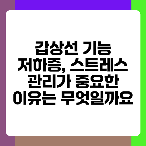 갑상선 기능 저하증, 스트레스 관리가 중요한 이유는 무엇일까요