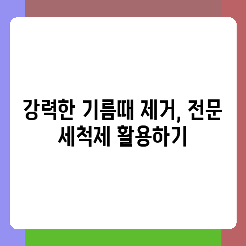 베이킹소다와 식초만으로는 해결되지 않는 묵은 기름때라면 전문 세척제를 사용하는 것도 좋은 방법입니다. 시중에는 다양한 주방 후드 전용 세척제가 판매되고 있어요. 제품 설명을 꼼꼼하게 읽고, 사용 방법에 따라 안전하게 사용하는 것이 중요합니다. 특히, 환기가 잘 되는 곳에서 사용하고, 보호 장갑과 마스크를 착용하는 것을 잊지 마세요. 전문 세척제는 강력한 세정력으로 쉽게 기름때를 제거해 주지만, 피부에 자극을 줄 수 있으므로 주의해야 합니다. 사용 후에는 잔여 세척제가 남지 않도록 꼼꼼하게 헹구어 주세요. 혹시라도 눈에 들어갔을 때는 즉시 흐르는 물로 씻어내고 의사의 진료를 받는 것이 좋습니다.