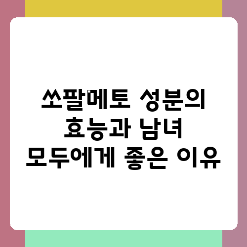 쏘팔메토, 요즘 건강기능식품으로 많이들 찾으시더라고요. 저도 처음엔 이름만 들어봤지, 정확히 어떤 효능이 있는지 몰랐는데 알아보니 남녀 모두에게 도움이 되는 놀라운 성분이더라고요. 오늘은 쏘팔메토의 효능과 왜 남녀 모두에게 좋은지 자세하게 알려드릴게요. 함께 쏘팔메토의 세계로 빠져볼까요?