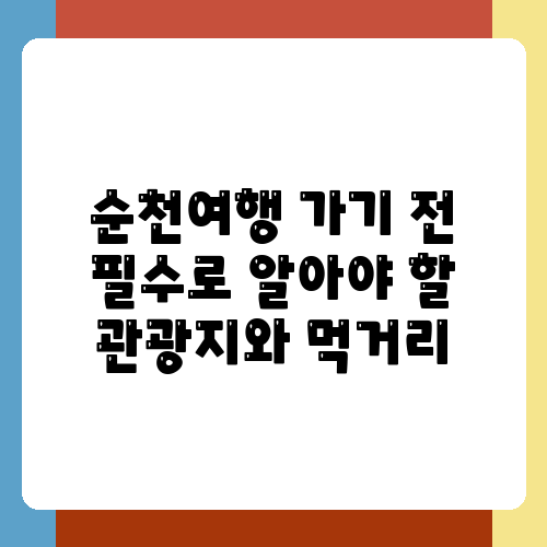 순천 여행을 계획하고 계신가요? 아름다운 자연과 매력적인 문화 유적이 가득한 순천은 잊지 못할 추억을 만들기에 최고의 장소입니다. 하지만 어디를 가야 할지, 무엇을 먹어야 할지 고민이시라면 이 글이 여러분의 여행을 더욱 풍성하게 만들어 드릴 거예요. 저와 함께 순천 여행의 필수 코스를 알아보고 즐거운 여행을 준비해 보세요!
