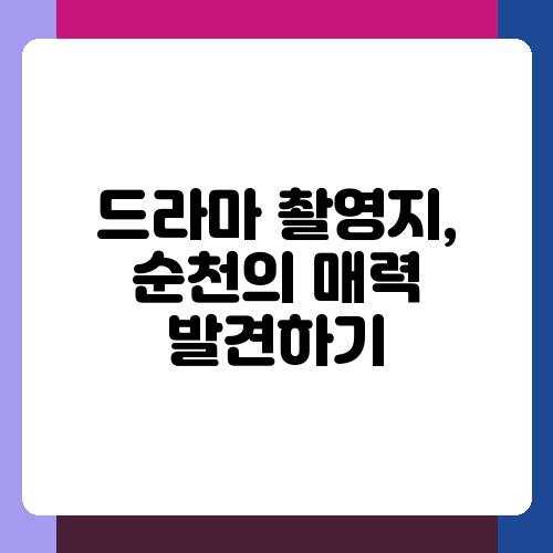 순천은 여러 드라마와 영화의 촬영지로도 유명합니다. 드라마 '꽃보다 남자' , '별에서 온 그대' 등 인기 드라마의 촬영지가 순천에 있다는 사실 알고 계셨나요? 드라마 속 아름다운 배경들을 직접 눈으로 확인해 보는 것도 즐거운 경험이 될 거예요. 각 촬영지마다 드라마의 한 장면을 재현해 볼 수 있는 포토존이 마련되어 있다고 하니, 인생샷을 남겨보는 것도 잊지 마세요! 촬영지들을 방문하면서 드라마 속 주인공이 된 기분을 만끽할 수 있답니다. 여행 계획을 세울 때 드라마 촬영지를 찾아보고 방문 계획을 세우면 더욱 특별한 여행이 될 거예요.