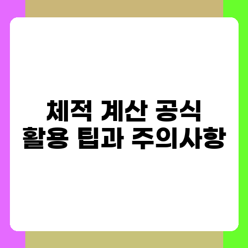 체적 계산을 할 때는 단위에 유의해야 해요. 센티미터(cm), 미터(m), 리터(L) 등 다양한 단위가 사용되기 때문에, 계산 결과를 해석할 때 단위를 꼼꼼히 확인해야 합니다. 또한, 계산 과정에서 실수가 없도록 주의해야 해요. 특히 복잡한 도형의 체적 계산을 할 때는 계산기나 전문 소프트웨어를 활용하는 것도 좋은 방법입니다. 혹시 계산 과정에서 헷갈리는 부분이 있다면, 다른 방법으로 계산하여 결과값을 비교해보는 것을 추천합니다. 이러한 확인 과정을 통해 오류를 줄이고 정확한 결과를 얻을 수 있어요. 정확한 계산을 위해 항상 주의를 기울이는 것이 중요하답니다.