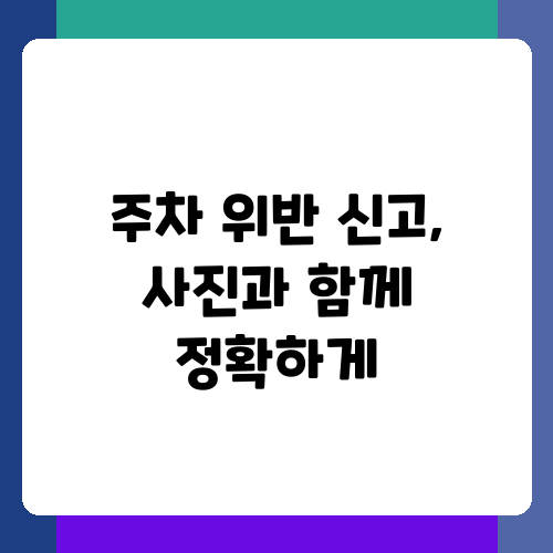 주차 위반 신고를 위해서는 정확한 사진이 필요합니다. 불법 주차된 차량의 번호판이 잘 보이도록 사진을 찍어야 합니다. 또한 차량의 위치, 주변 상황 등을 함께 촬영하면 신고 처리에 도움이 됩니다. 가능하다면 차량의 전체 모습과 주변 표지판도 함께 찍어두면 더욱 효과적입니다. 사진 촬영은 시간을 잘 확인하고, 날짜와 시간 정보가 사진에 담기도록 주의하세요. 사진은 몇 장이든 신고에 도움이 되니 여러 각도에서 촬영해두는 것을 추천합니다.
