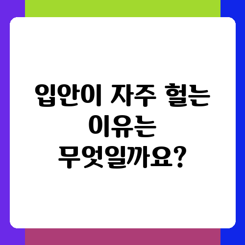 입안이 자주 헐어서 고생하시는 분들 많으시죠? 저도 몇 년 전부터 입안이 자주 헐어서 정말 힘들었던 기억이 나요. 음식을 먹는 것조차 고통스러웠고, 잠 못 이루는 날도 많았답니다. 알고 보니 이런 증상은 단순히 스트레스 때문만이 아니라 면역력 저하와 깊은 연관이 있다고 하더라고요. 오늘은 입안이 자주 헐는 이유, 특히 면역력 저하와 관련된 반복적인 구내염의 원인과 관리법에 대해 자세히 알아보는 시간을 갖도록 하겠습니다. 함께 건강한 입 안을 되찾아 보아요!